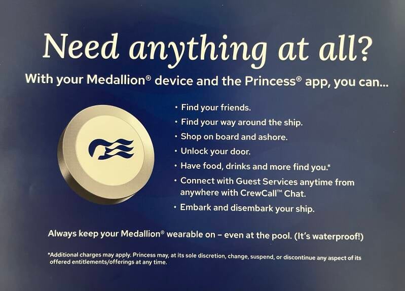 - Instead of the standard “Sea-pass” we received a wearable Medallion device.