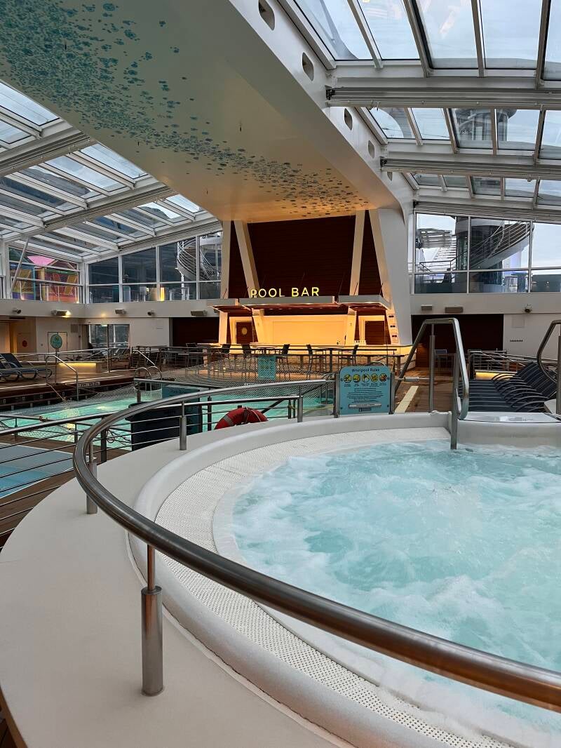 As is his habit (especially on a cruise with many sea days), Greg visited the gym regularly (on the TransPacific, but not on Alaskan cruise). The stationary bikes and free weights were adequate and not overly busy. With a flexible schedule and sea days, it’s easy to step out and return another time if our timing is off, or a noisy class is in session (infrequently).